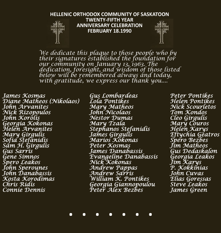 Editorial Note: The following article is about the 25th anniversary of the provincial government's incorporation of the Hellenic Orthodox Community of Saskatoon.