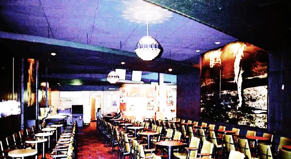 By 1970, the beer parlour had become licensed as a beverage room. To compete within the city’s downtown “bar scene”, it was renamed as the Apollo Room and redecorated with an outer space theme, featuring large mural photographs of the Apollo 15 landing on the moon that occurred in 1969.