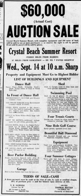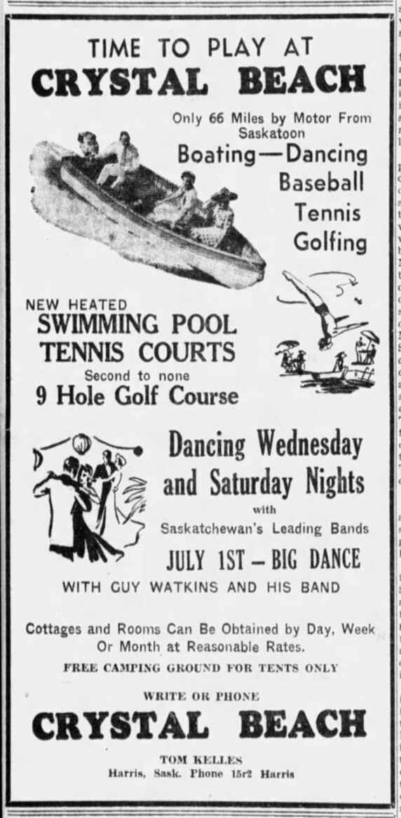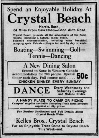Sources: Saskatoon Star-Phoenix, various editions; “Crystal Beach”, Geocashing, https://www.geocaching.com/geocache/GC13VM6 .