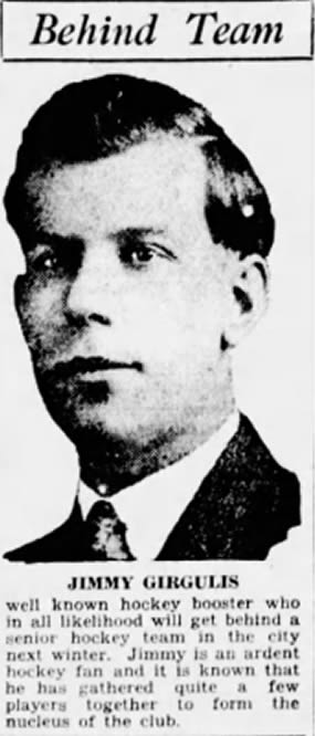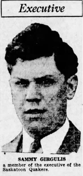 The Girgulis brothers, through the Elite Café, had been significant sponsors of the Saskatoon Quakers and provided the venue for many meetings and gatherings of the hockey community in Saskatchewan. Sam Girgulis served on the Quakers’ executive committee.