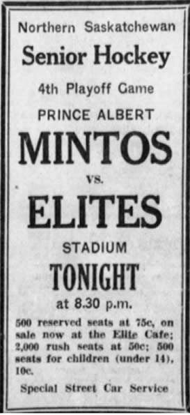 During the 1933-34 season, the Saskatoon Elites finished second in the Northern Saskatchewan Hockey Division. (Prince Albert Mintos won 3 of 4 games over the Saskatoon Elites in the final playoffs.) However, despite a respectable on-ice season in its first year of operation, the team was not a financial success and the team did not continue for another season.