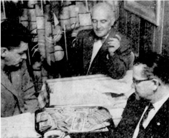 A tray of money was collected from team shareholders (at $240 each) to cover the 1957 losses of the Saskatoon Gems Baseball Club.