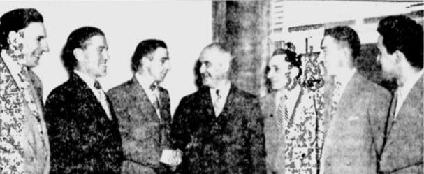 Middle Row: Bobby Reid (trainer), Joe Kretschmar, Jack Motley, Cliff Pemberton (captain), Ralph Mabee (general manager), Jose Valladarez, Mario Herrera, Jim Shirley