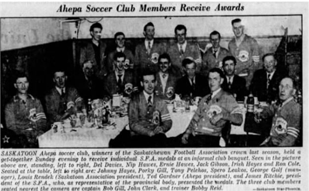 The team achieved a reputation as a “young, hustling club”. The Star Phoenix reported that during the regular season of play, the Ahepas out-scored their opponents - 38 goals against opponents to seven goals against Ahepa. They won the right to represent northern Saskatchewan in the provincial Dominion Football Association finals by beating the Army, Navy, and Air Force Rangers in three straight games. Before playing against the southern Saskatchewan representatives, the Regina Nationals, for the provincial championship, the Star-Phoenix reported that “most Second Avenue restaurateurs [were] backing the Ahepas” and speculated that if the Ahepas were victorious, “the celebration may call for ‘dinners on the house’ up and down Saskatoon’s main drag” (Saskatoon Star-Phoenix, June 28, 1949).